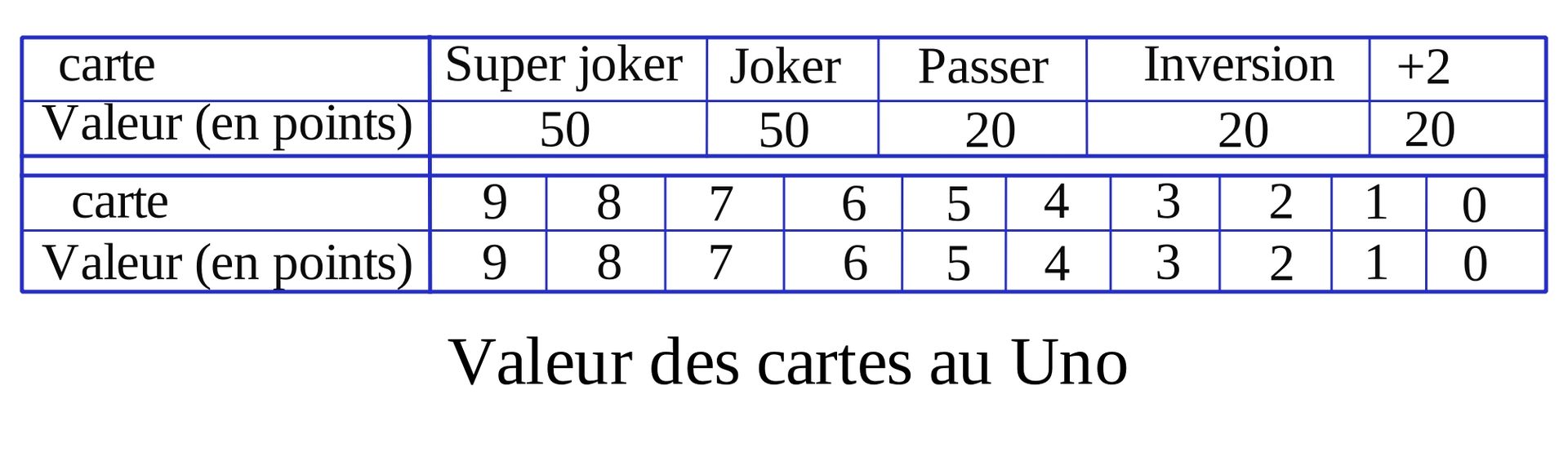 ◊ Le joueur qui a gagné la manche se voit attribué le total des points comptabilisés à la fin de la manche.